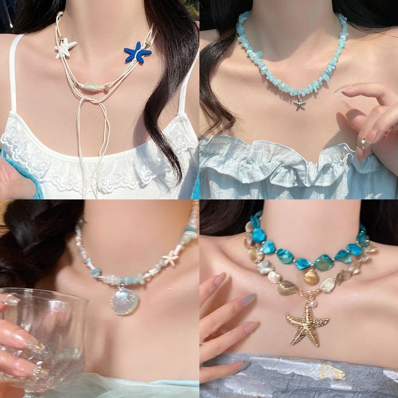 Halskette mit Perlen im Strandurlaubsstil, Muschel, Seestern, frische Mode, Schlüsselbeinkette, Nischen-Design, Schmuck für Frauen