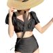 Women 2PCS Bikini Suit, Plain Ruched Short Sleeve Push-Up Crop Tops, Same Style High Waist Triangle Pantie, Ladies Summer Beach Swimwear