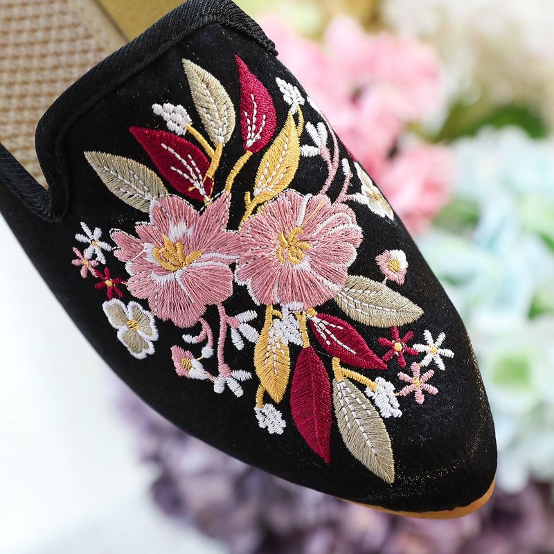 Slippers, single shoes, cotton shoes, pointed shoes, Muller shoes, fashionable ethnic style women's single shoes, embroidered cloth shoes