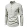 Herren-Herbsthemd aus Baumwollleinen mit langen Ärmeln, einfarbiges Stehkragenhemd