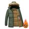 Herren-Winterjacke mit Fleecefutter und Kapuze, warmer, wattierter Mantel für Papa, locker sitzende Oberbekleidung in Übergröße für ältere Herren (Schwarz/Blau/Armeegrün)