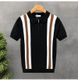 Herrenbekleidung Freizeit Ice Silk Slim Herren Vertikal Gestreiftes Revers Gestricktes Kurzarm T-Shirt Business