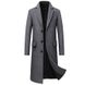 Herrenbekleidung: Moderner Mantel aus Wollmischung für Herren – Langer Mantel im koreanischen Stil mit schmaler Passform, Revers und einreihigem Design (Schwarz, Grau)