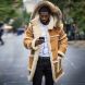 Men Winter Fashion Coat Solid Color Patchwork Long Sleeve Hooded Turndown Collar Coat Casual Keep Warm Concise Style Coat