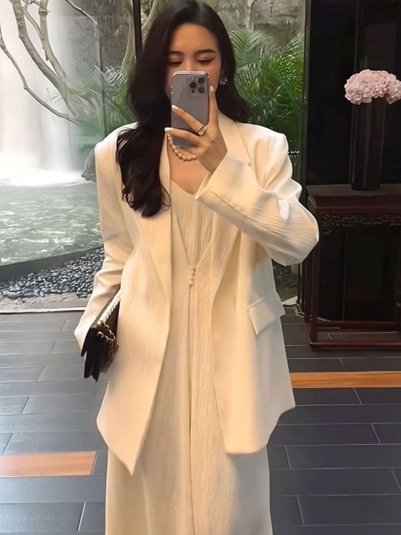 High-End Suit Set for Women 2025 Spring and Autumn New Casual Strap Dress Blazer Elegant Slimming Two-Piece Set