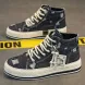 High-Top-Skateschuhe aus Used-Denim mit gutem Grip, atmungsaktive Schnürschuhe, Herrenschuhe, inspiriert von Espadrilles