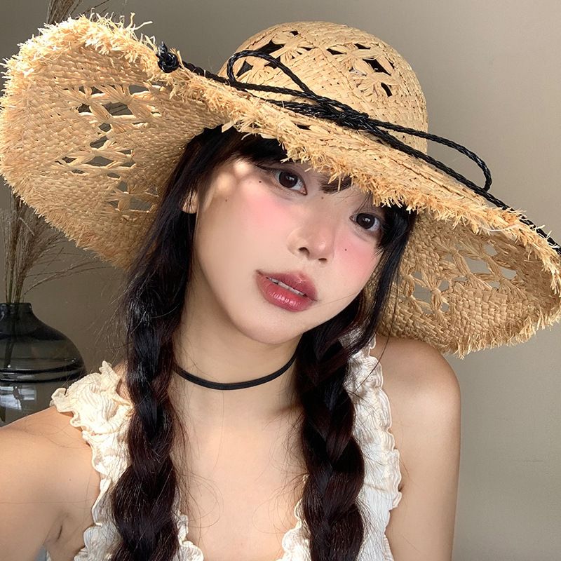 Hollow Out Raffia Straw Hat for Women Summer 2025 New Beach Sun Protection Photo Sunshade Wide Brim Sun Hat