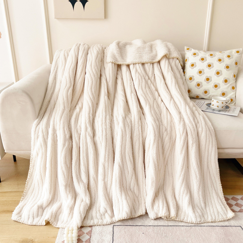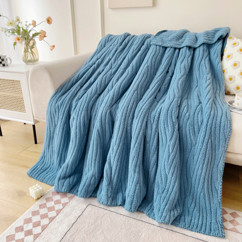 Home & Garden Neue einfache Jacquard-Decke aus bequemem Baumwollsamt mit warmem Schalenrand, Freizeitdecke, multifunktionale, einfarbige Decke