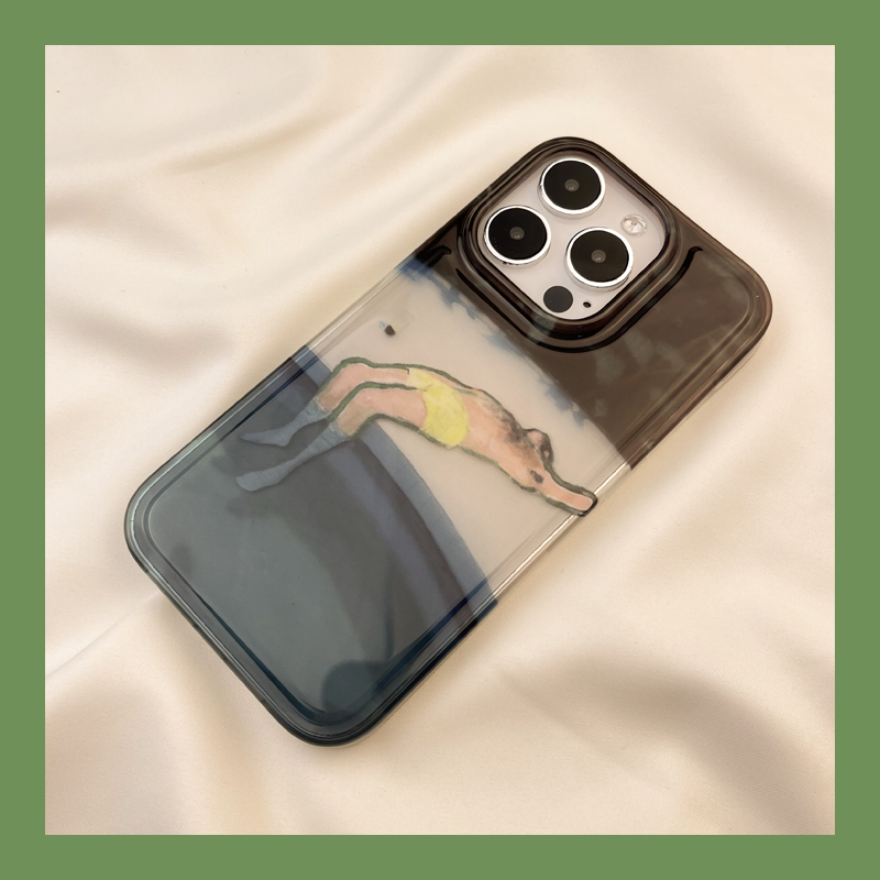 Ins Green Base Lawn Liegend Flach Ölgemälde Geeignet für Telefon iPhone Max Neue 15 Weibliche Edition Nische 14 Cartoon