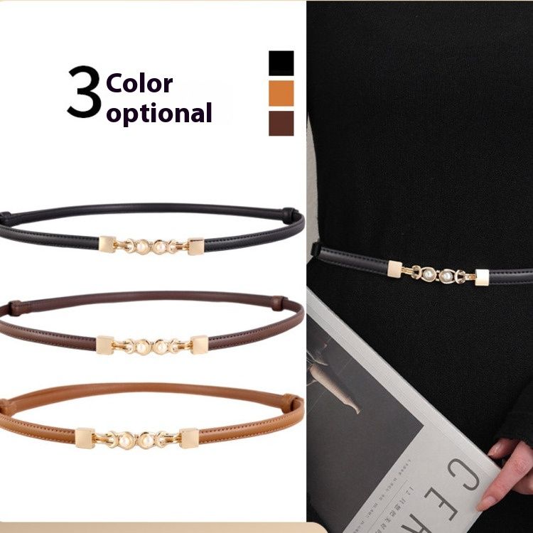 Internet Berühmter Damengürtel aus echtem Leder mit Perlen, dünner Bund, modische und vielseitige Dekoration mit Kleidergürtel