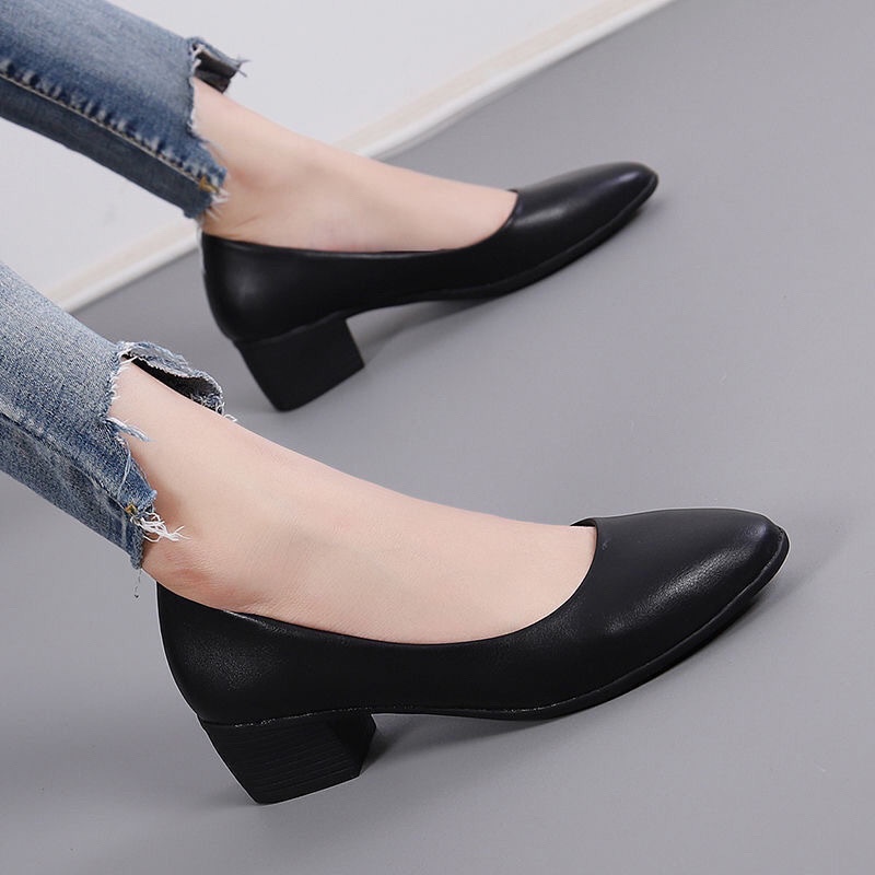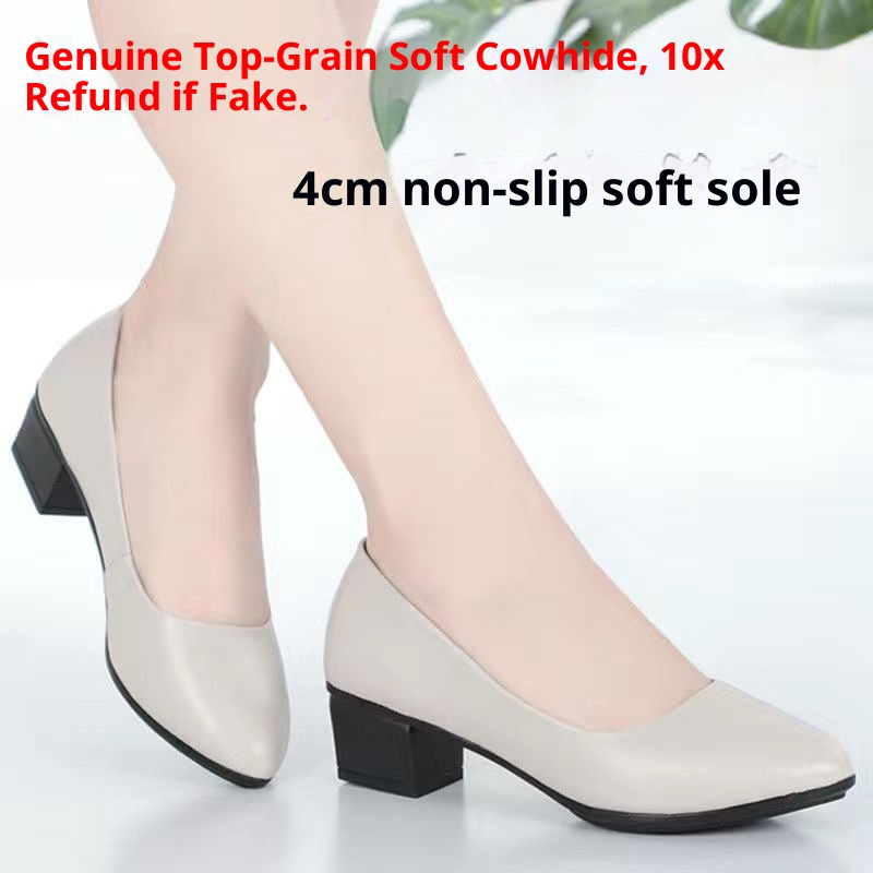 Top Layer Cowhide Work Shoes for Women, Black Professional Interview Office Shoes, Formal Commuter Non-Slip Leather Shoes, Women's Single Shoes