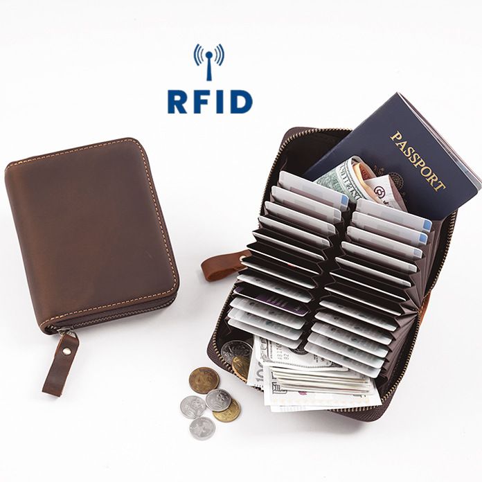 Card Bag Card Cases Vintage Crazy Horse Leather RFID Anti Magnetic Card Holder Large Capacity Organ Bag Multi Card Slots Genuine Leather Coin Purse