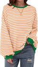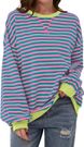 Koreanisches T-Shirt mit kontrastierenden Farben, schlicht gestreift, langärmelig, Oversize-Schnitt, für Damen, Frühling