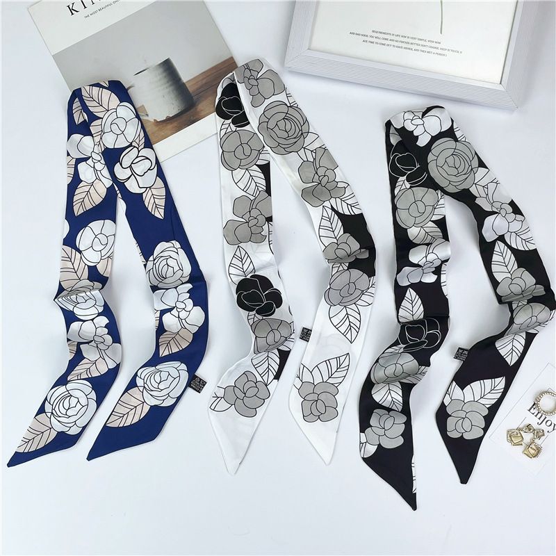 Korean version scarf, small scarf, hairband, women's small fragrant camellia long strip, paired with shirt, shirt, decorative scarf