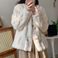 Stay warm and stylish this winter with our faux shearling coat. Designed with a plush, fluffy texture, this coat wraps you in comfort while keeping the chill at bay. The classic round neck and horn buttons add a touch of timeless elegance, making it a versatile piece for any wardrobe.