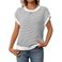 Lässiger Strickpullover mit Streifen für Damen, Rundhalsausschnitt, Bohemian-Stil, lockere Passform, Häkeldetail, 3/4-Ärmel, Pullover-Oberteil