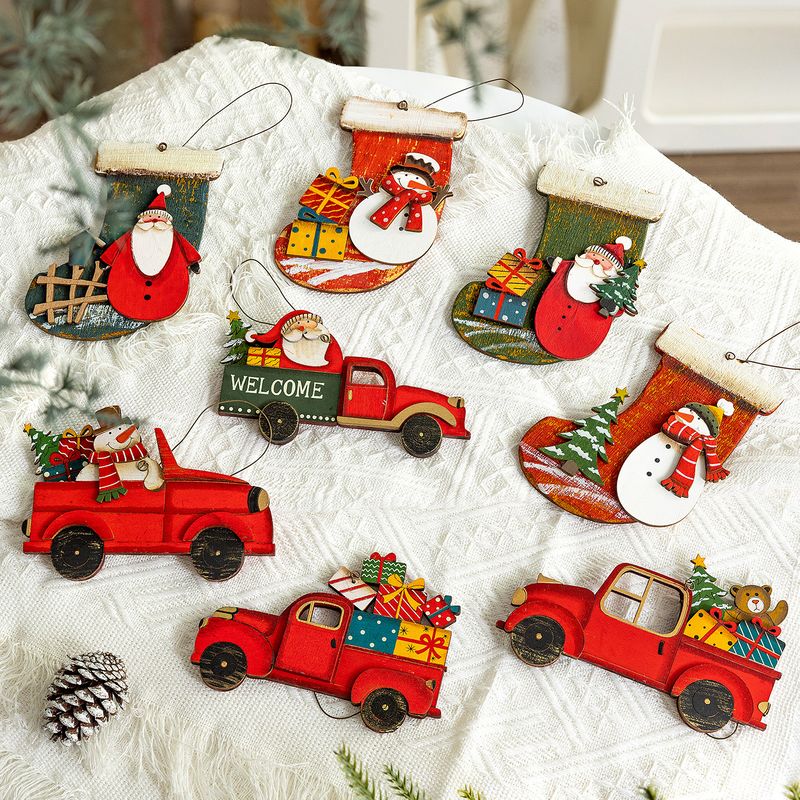 Lillian Cross-Border Decoration Bemaltes Holzschild Bär Autoanhänger Schneemann Geschenk Socken Weihnachtsbaumschmuck