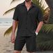 Lockerer Anzug für Herren im amerikanischen Stil, hohles Kurzarmhemd + Shorts, lässiges zweiteiliges Set 8001