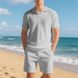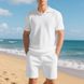 Lockeres Poloshirt im amerikanischen Stil mit Sommerkragen und Waffelmuster für Herren, lässiges Kurzarm-Shorts-Set für Herren
