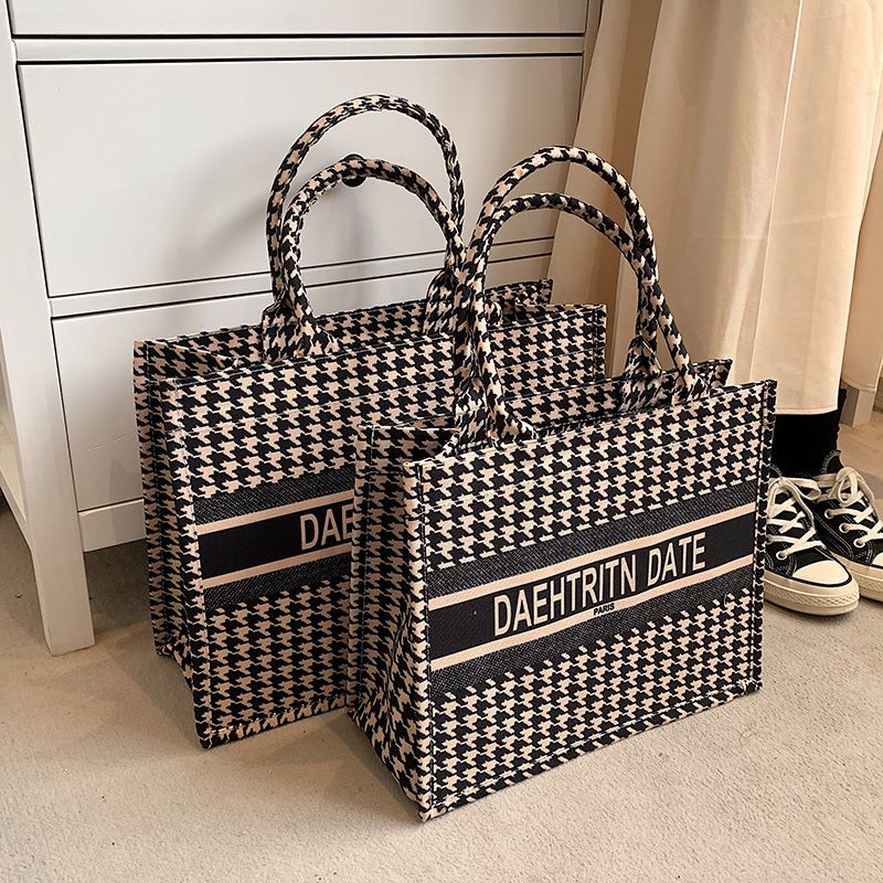 Luggage Store_Women's Handheld Printed Canvas Bag Large Capacity Shopping Storage Girl's Shoulder Crossbody Bag