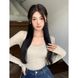 Mädchen Französisch Retro Strickshirt mit niedrigem Ausschnitt für den Herbst, Damen Langarm Frühlings-T-Shirt, hochwertiges Unterhemd