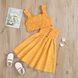 Pair the top with denim shorts for a casual look, or wear the full set for special occasions. The vibrant color options (yellow, red, green) let you choose the perfect hue to match your child's personality. The elastic waist ensures easy dressing and a perfect fit as your child grows.