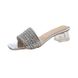 Mit Kristallen verzierte Slide-Sandalen – Pantoletten mit klobigem Absatz und offener Spitze für Damen | Modische Sommer-Hausschuhe für draußen