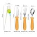 Mother & Kids 304 Edelstahl Kindermesser, Gabel, Löffel und Essstäbchen 4-teiliges Set mit Silikongriff Baby-Esslöffel-Trainings-Essstäbchen-Set