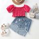 Mother & Kids - Neues Mädchen-Set aus einreihigem Kragenoberteil und Jeansrock mit unregelmäßigen Löchern
