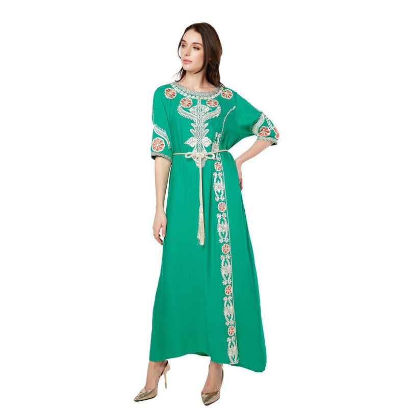 Muslimisches Gebetskleid mit Rundhalsausschnitt, langen Ärmeln, besticktem Schnürverschluss, formelles Kleid für Damen_voghion.com