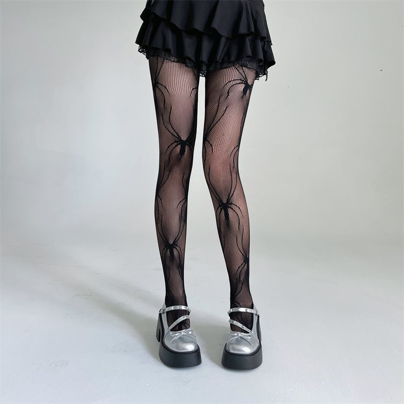 【Fast Refund】New Halloween Mesh Stockings Mesh Pantyhose Plus Size Spider Lady Ghost Festival Cosplay Student Black Stockings