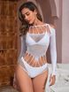 New luminous lingerie long sleeved bikini jumpsuit sexy glowing transparent white mesh