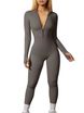 Neue sportliche, feuchtigkeitsableitende, gerippte, langärmlige, lässige Overallhose mit Reißverschluss für Damen