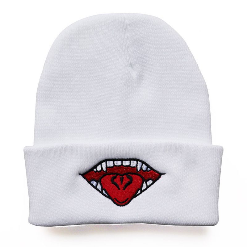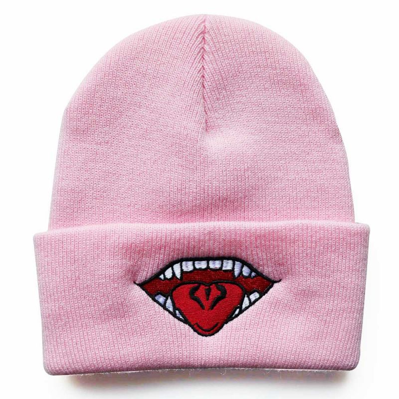 Men and Women New Big Mouth Tongue Embroidery Knitted Hat Student Autumn and Winter Woolen Hat Warm Pullover Hat