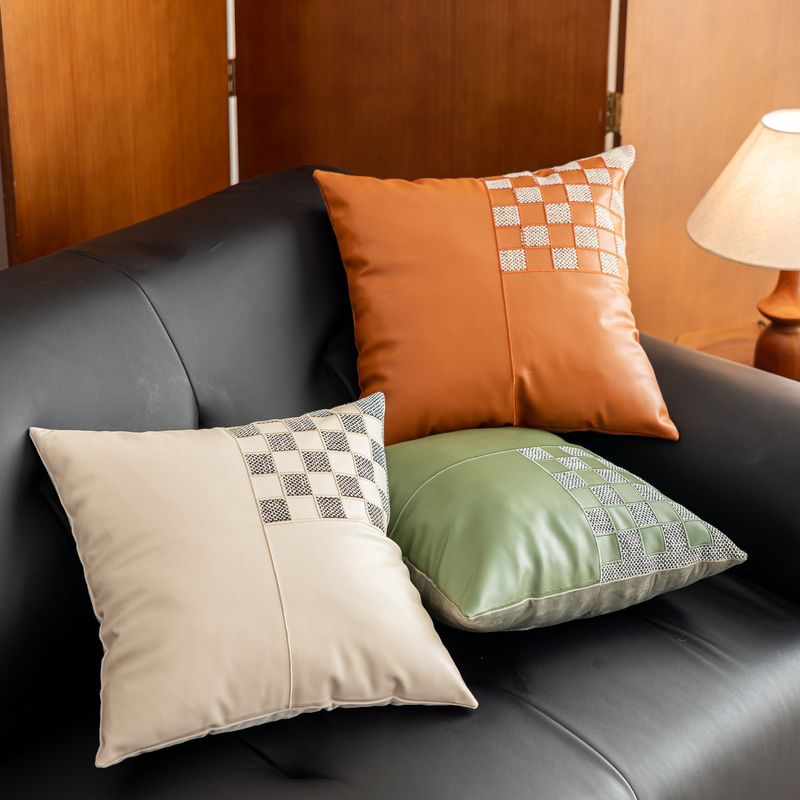 New Style Embroidered Small Plaid Leather Pillowcase Light Luxury High-end Feel Home Bedside Cushion Car Office Pillow