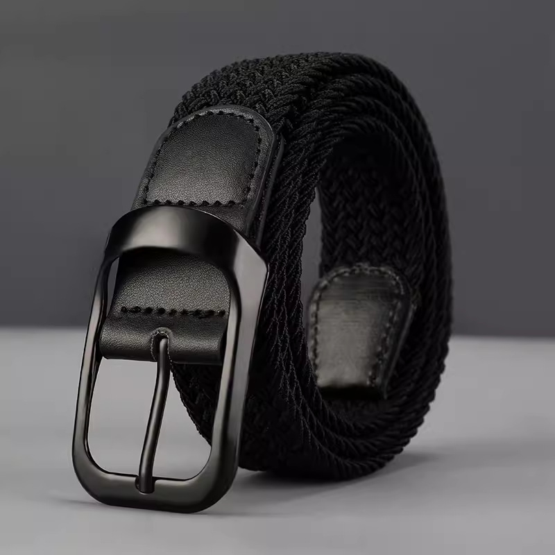 Neuer Gürtel aus Canvas für Herren mit Nadelschnalle, schwarzer Freizeitgürtel, trendiger, vielseitiger, elastisch gewebter, nicht perforierter Gürtel für Studenten