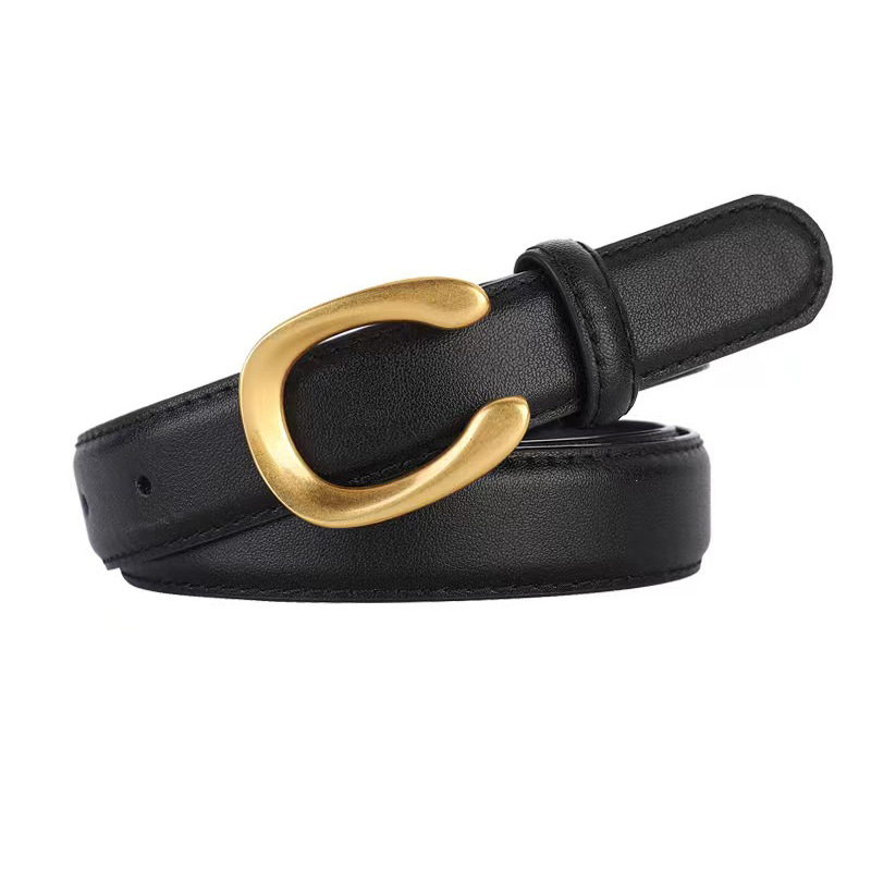 Neuer Gürtel Damen Schwarz Modischer Jeansgürtel Vielseitiger, einfacher Hosengürtel mit quadratischer Schnalle und Rock, Anzug High-End-Dekoration auf Lager_voghion.com