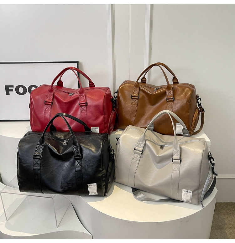 The PU leather crossbody gym bag with an independent shoe compartment is a portable choice for fitness enthusiasts. Its outer layer is made of PU leather, featuring a fine texture, water resistance, and wear resistance. Daily stains can be wiped clean easily, balancing practicality and aesthetics.