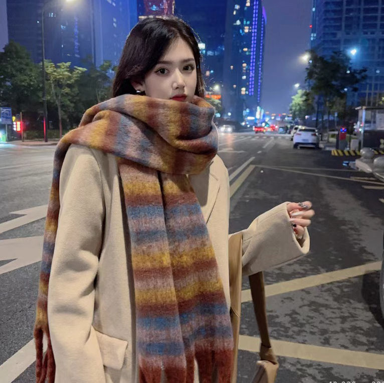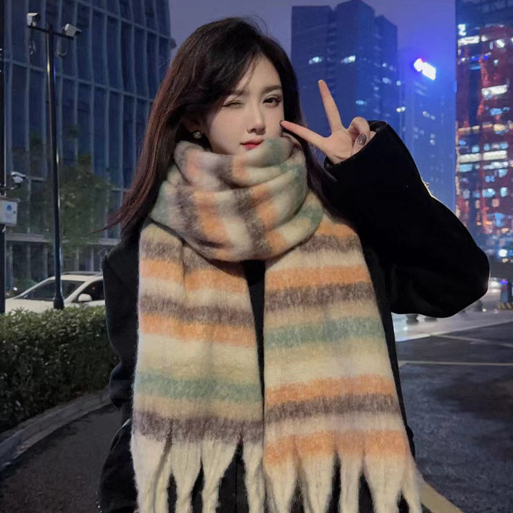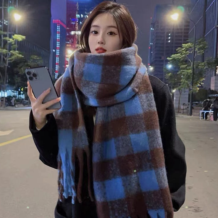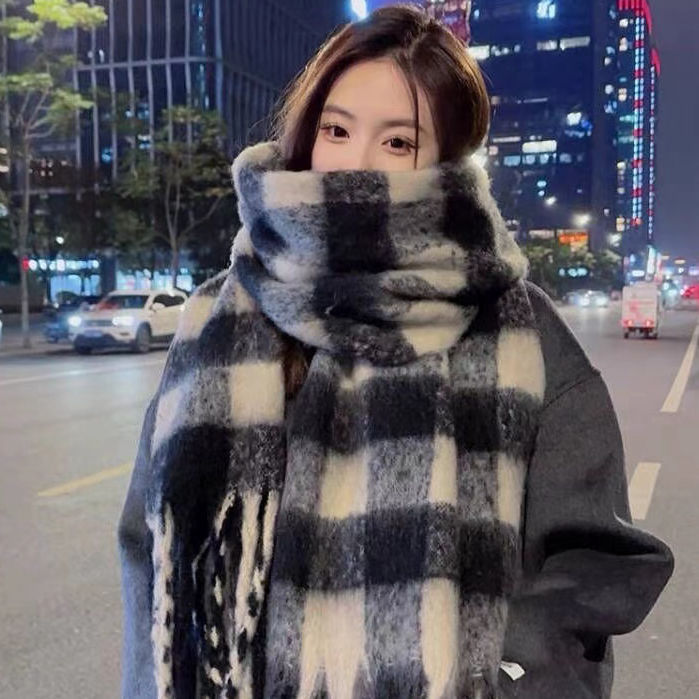 Karierter Schal in Schwarz und Weiß, verdickte Farbe, warmer Schal mit Fransen