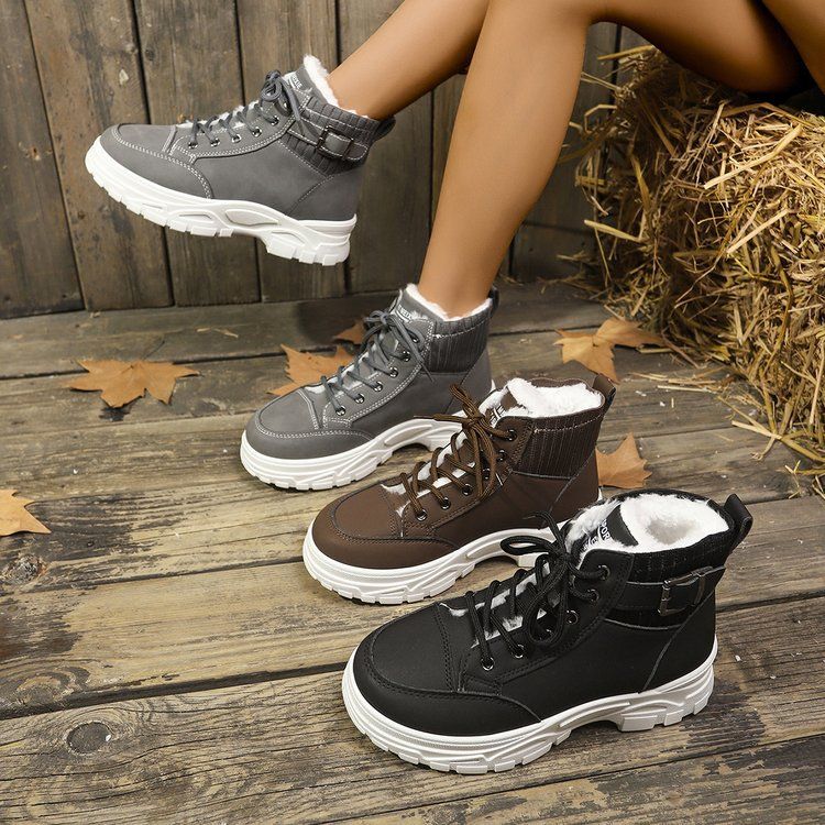 Plus Size Snow Boots for Women 2024 Autumn Winter New Fleece-Lined Thickened Hiking Boots Martin Boots for Women