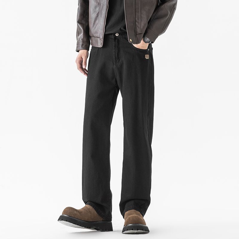 Primärfarbe Schwarz Denim Herren Harlan Lose Gerade Trendy Marke Hängende Mittlere Taille, Herbst Neue Lange Coco Denim Acht-Fass Kleidung Dekoriert