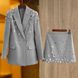 Schickes Set aus Blazer und Rock mit Strasssteinen – funkelnder Zweiteiler für Damen, der sowohl im Büro als auch am Abend getragen werden kann