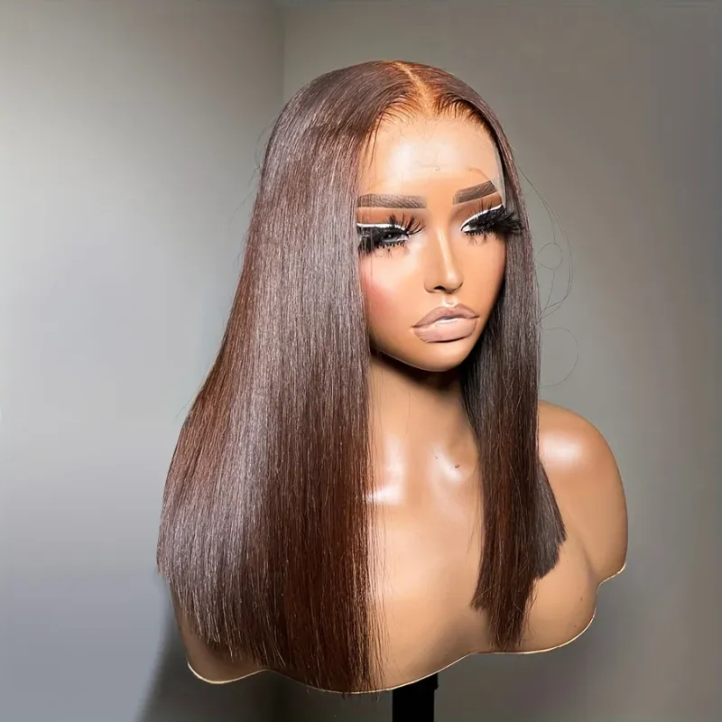 Schokoladenbraune, kurze Bob-Perücke, HD-Spitzenfrontperücke, HD-Spitzenverschluss, Echthaar