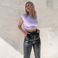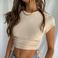Sexy Pit Stripe Open Navel Short Kordelzug Rundhals Kurzarm T-Shirt