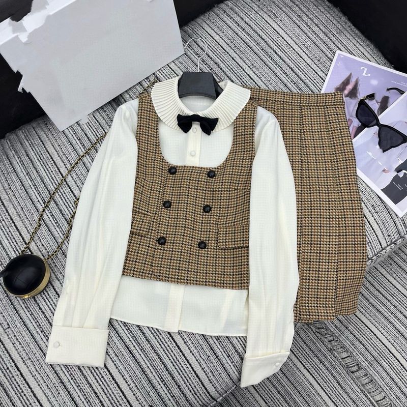 Shenzhen Nanyou Direct Autumn New Style Elegant Age-Reducing Shirt Sleeveless Vest High-Waisted Skirt Fashion Set