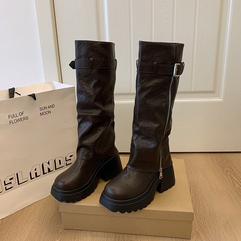 Product Category:Knight Boots,Suitable age group:Adult,Brand:Other,Product Source Category:In Stock,Item Number:2616,Upper material:PU,Sole material:Rubber,Applicable Gender:Female,Style:European and American Style,Shoe Toe Shape:Round Head,Heel shape:Chunky Heel,Heel height:High heels 6-8cm,Trendy Boots:Knight Boots,Trendy Elements:Belt Buckle,Functionality:Height Increasing,High-waisted:High Tube,Thickness:Average thickness,Wearing style:Side Zipper,Pattern:Solid Color,Suitable for the season:Autumn,Fastest shipping time:1,Boot shaft material:PU,Shoe Sole Craftsmanship:Adhesive Shoes,Year of Release Season Time of Release:2025 Winter Season,Color:Black, brown,Size:35,36,37,38,39,40