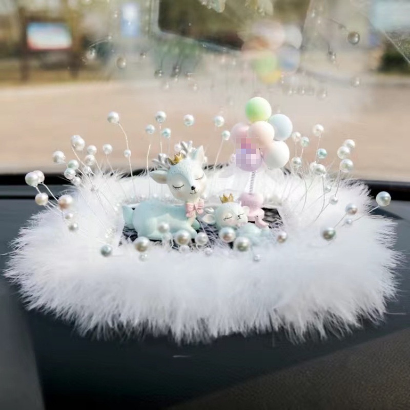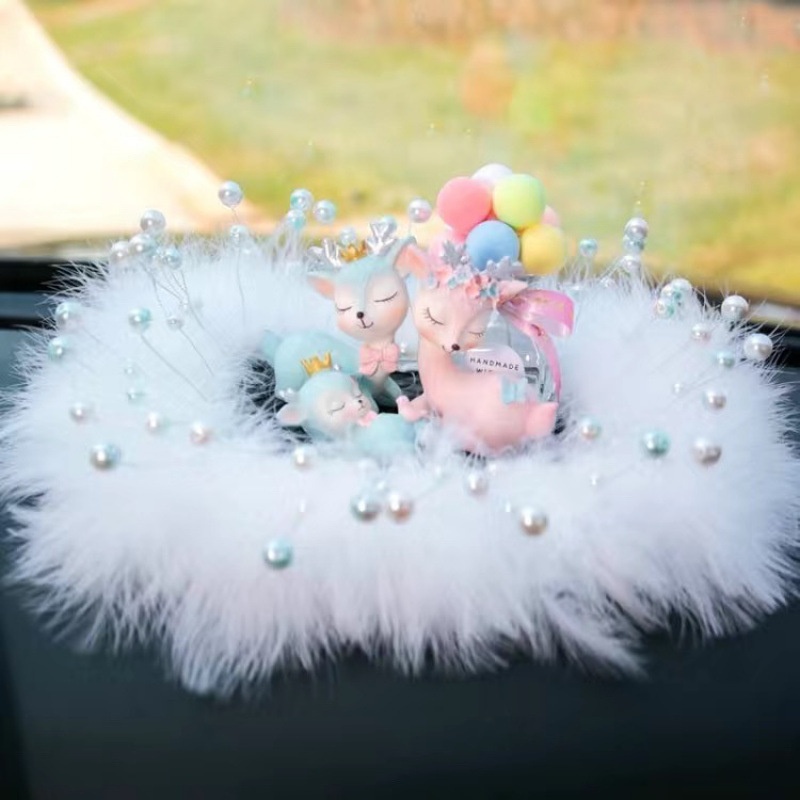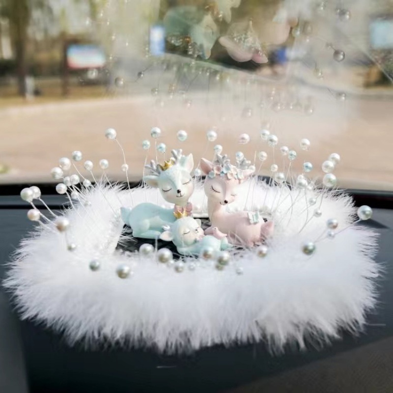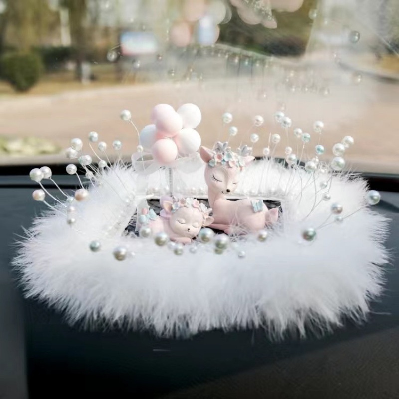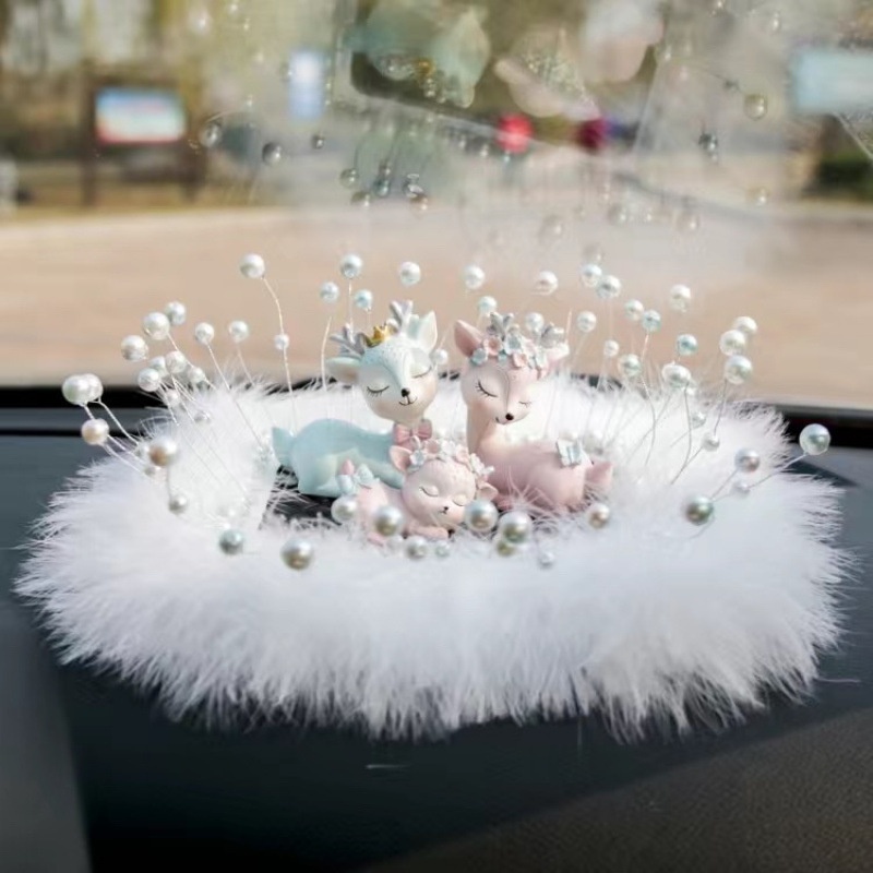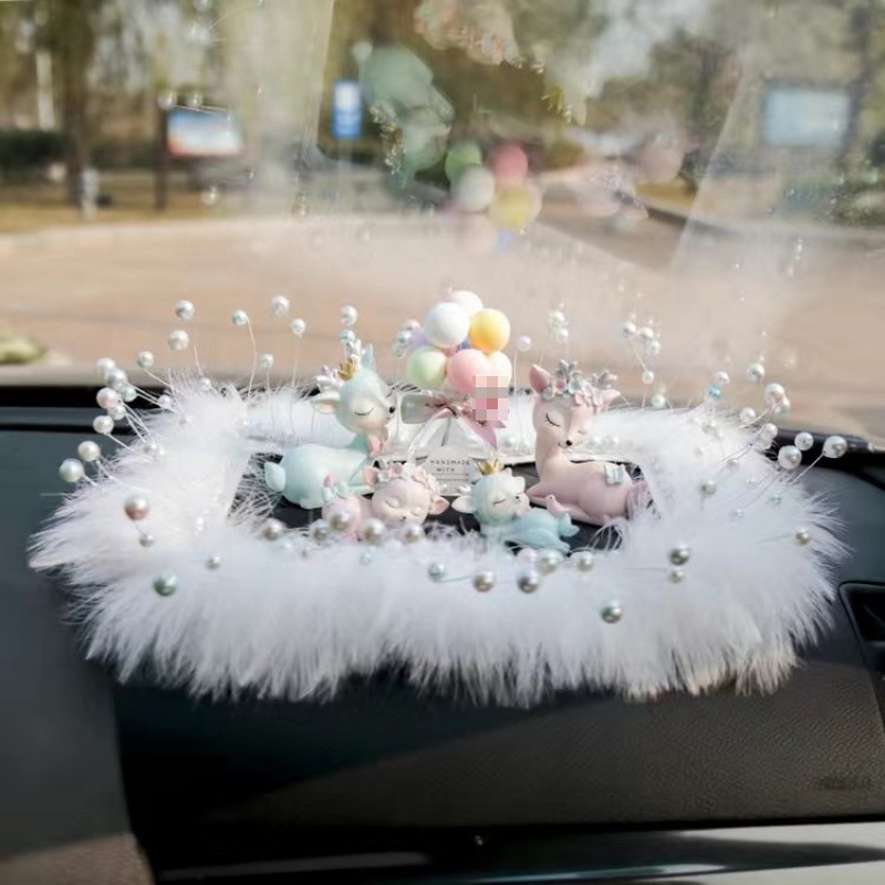 Sichere Reise Hirsch-Ornament, Parfümhalter, Beichtballon, Perlenfeder, Anti-Rutsch-Matte, Auto-Innenausstattung