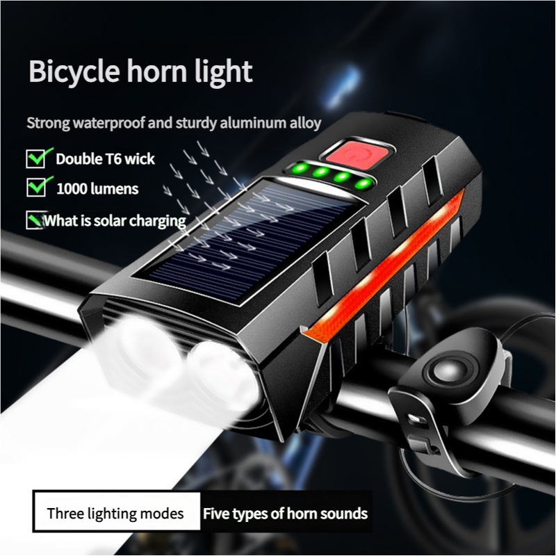 Solarbetriebene Hupen und multifunktionale Fahrrad-Frontlichter für das Radfahren im Freien: USB-Doppellade-Nachtlichter