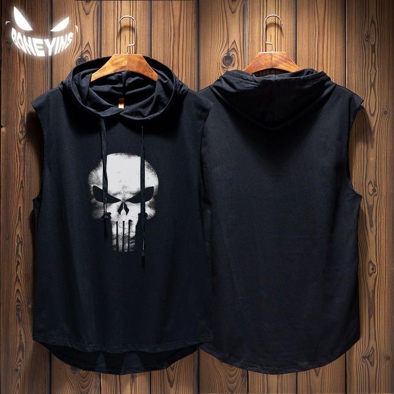 Summer Basketball Hooded Vest for Men Skull Head Boxing Fighting Training Fitness Vest Casual Sleeveless Hooded Tank Top
