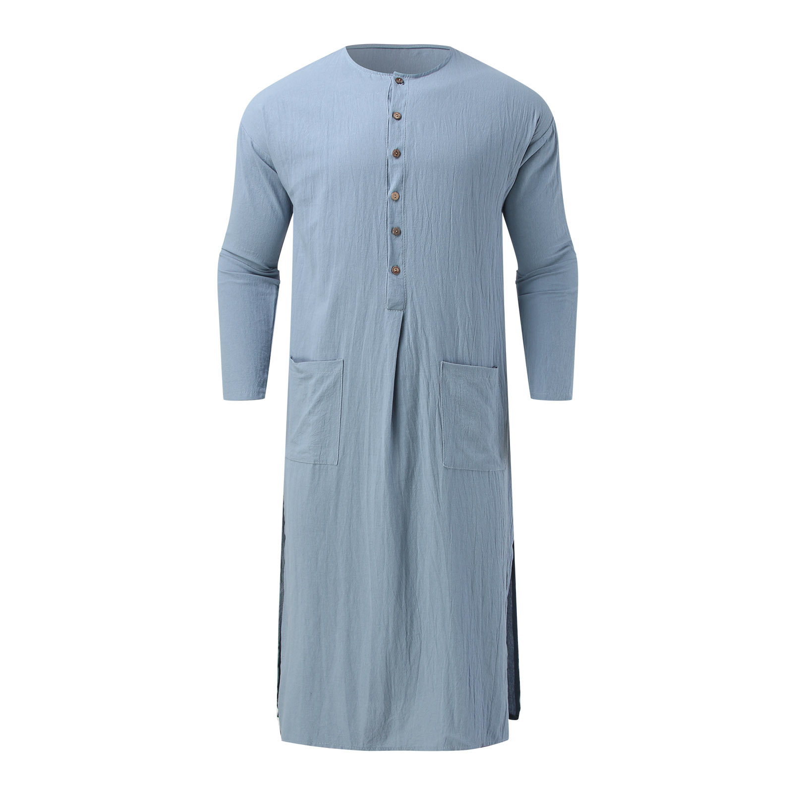 Sommer Herren Langarm Einfarbig Reine Baumwolle Lose Robe männer Muslimischen Robe
